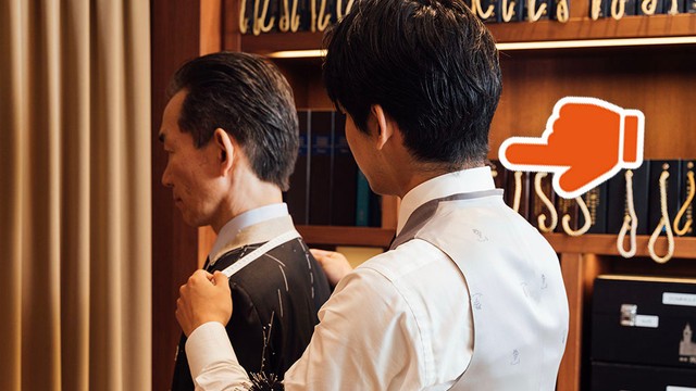 お客さんの肩幅をメジャーで測っているあのひと、何してる?